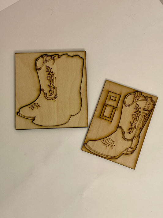 Cowboy Boots and Hat Ornament Wood Cutout - Set of 2