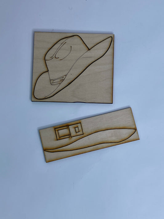 Cowboy Hat Ornament Wood Cutout - Set of 2