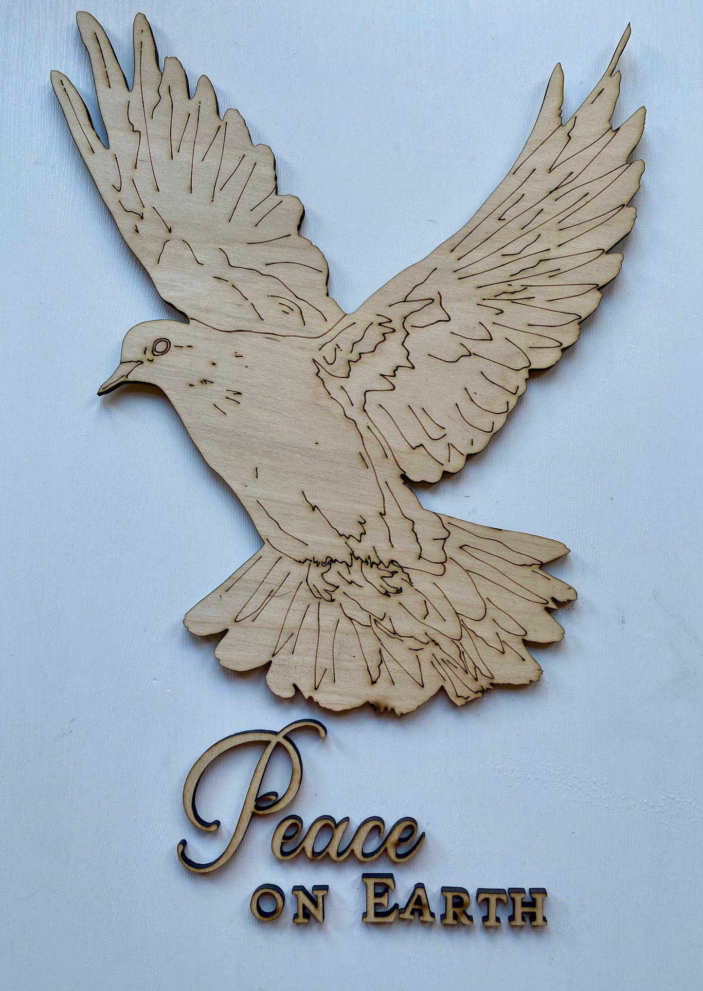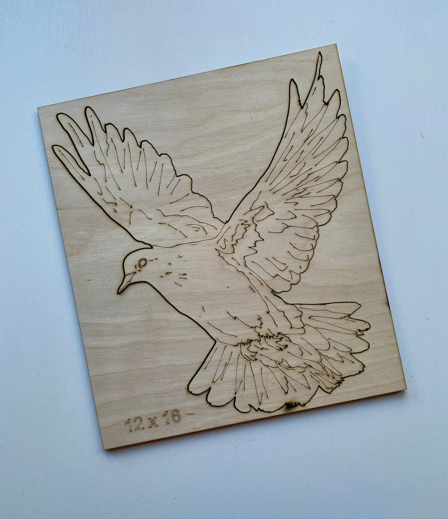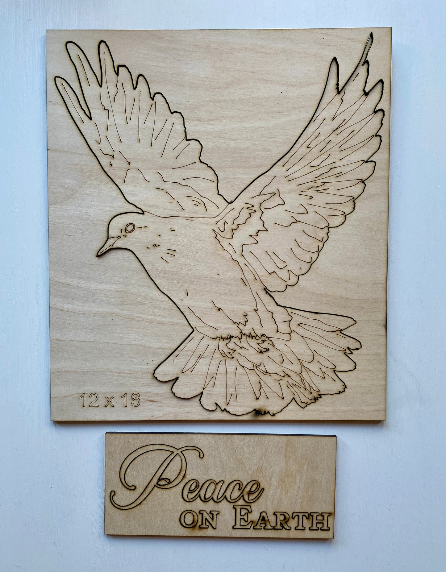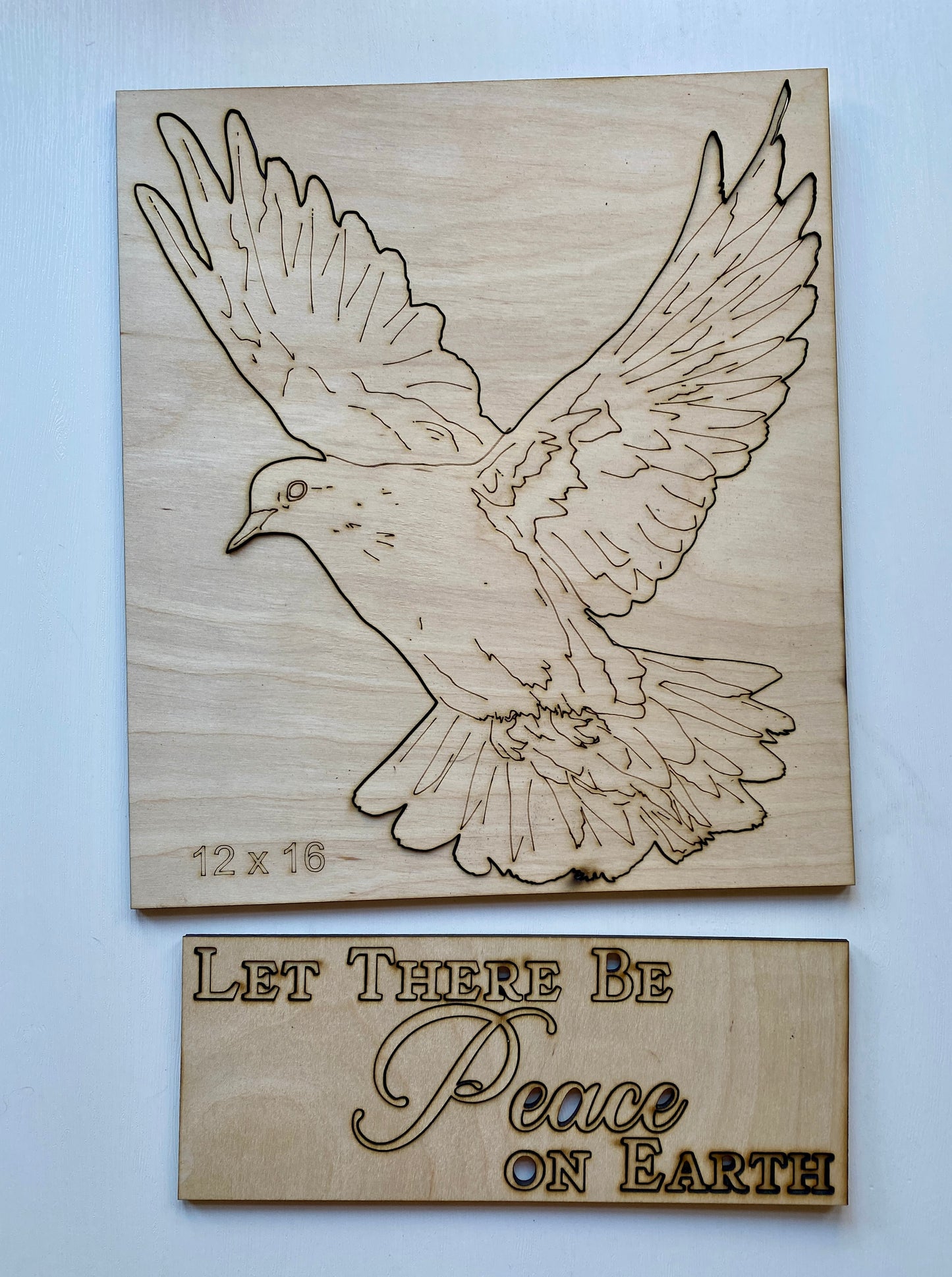 Our Peace Dove wood cutout set is perfect for a 12 x 16 substrate (not included). But other sizes would work depending on the variation you order. Please read all of the listed sizes.